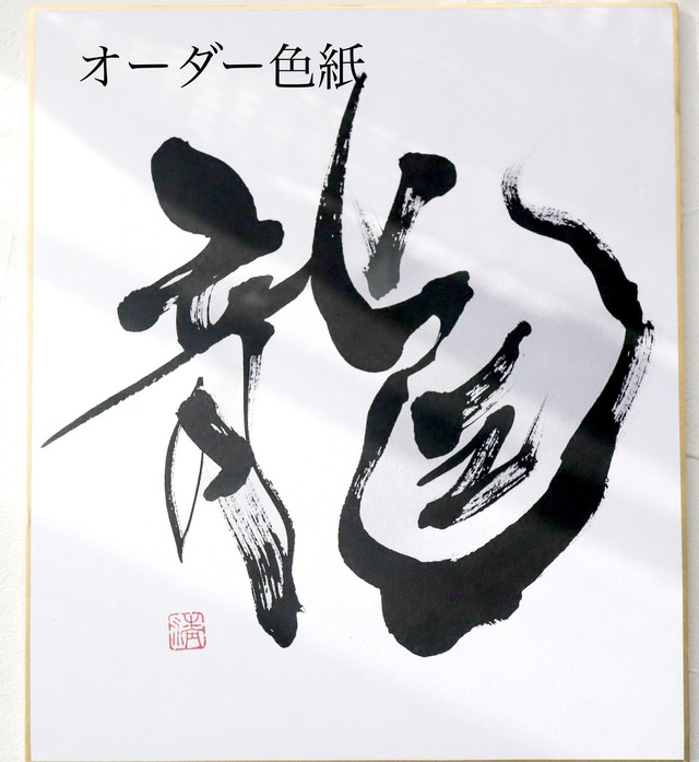 【オーダー色紙】 あなただけの1点物!! 色紙のオーダーメイドとなります お急ぎの方はお気軽にご相談下さいませ 《墨汁の色》 10色 黒(墨汁)、金、銀、銅、煌紅(赤)、恋(ピンク)、青煌(青)、 紫煌(紫)、翡翠(緑)、燻(グレーな色合い) 薄墨も可能ですが、濃度などはお任せになります。 ご希望の方は黒色をご選択し、備考欄に薄すみ希望とご記入下さい。 ◎オーロラカラー 2色以上を混ぜてグラデーションのように書きます 2色目 +200円 3色目 +300円 カラーの色本で、星のミニ額縁を載せておきます! 《文字数》 基本的に漢字1〜3文字、 ひらがな、カタカナ3〜4文字 英字4〜6文字 文字にもよりますので、ご相談ください。 難しそうな場合はこちらからご連絡いたします。 《オプション》 添える英字 +200円 墨飛ばし +100円 周りの模様 +200円 《色紙サイズ》 通常の大色紙 272×244mm F4 335×244mm (A4とB4の間くらいのサイズです) 【オーダー方法】 ◎字体やバランス等がお任せで良い場合は、 サイズ、文字、オプションを選択肢し そのままご購入ください ◎少しイメージ等がある方は 《質問する》から、又はInstagramやXのDMからご相談下さい。 お店のお名前等の場合は、表に判子を押さず、裏側にサインにもできますので、ご相談くださいませ。 わからない場合は一度お問い合わせ、メールよりご連絡下さいませ。 【配送方法】 お支払い後1〜2週間以内に発送致します お急ぎの方はご一報ください。 クリックポスト、レターパックよりご選択下さい レターパックは追跡、対面受け渡しとなります。 万が一、配送時の紛失・破損事故が起きました場合、こちらでは責任を負いかねますので、ご理解いただける方のみご購入をお願いいたします。