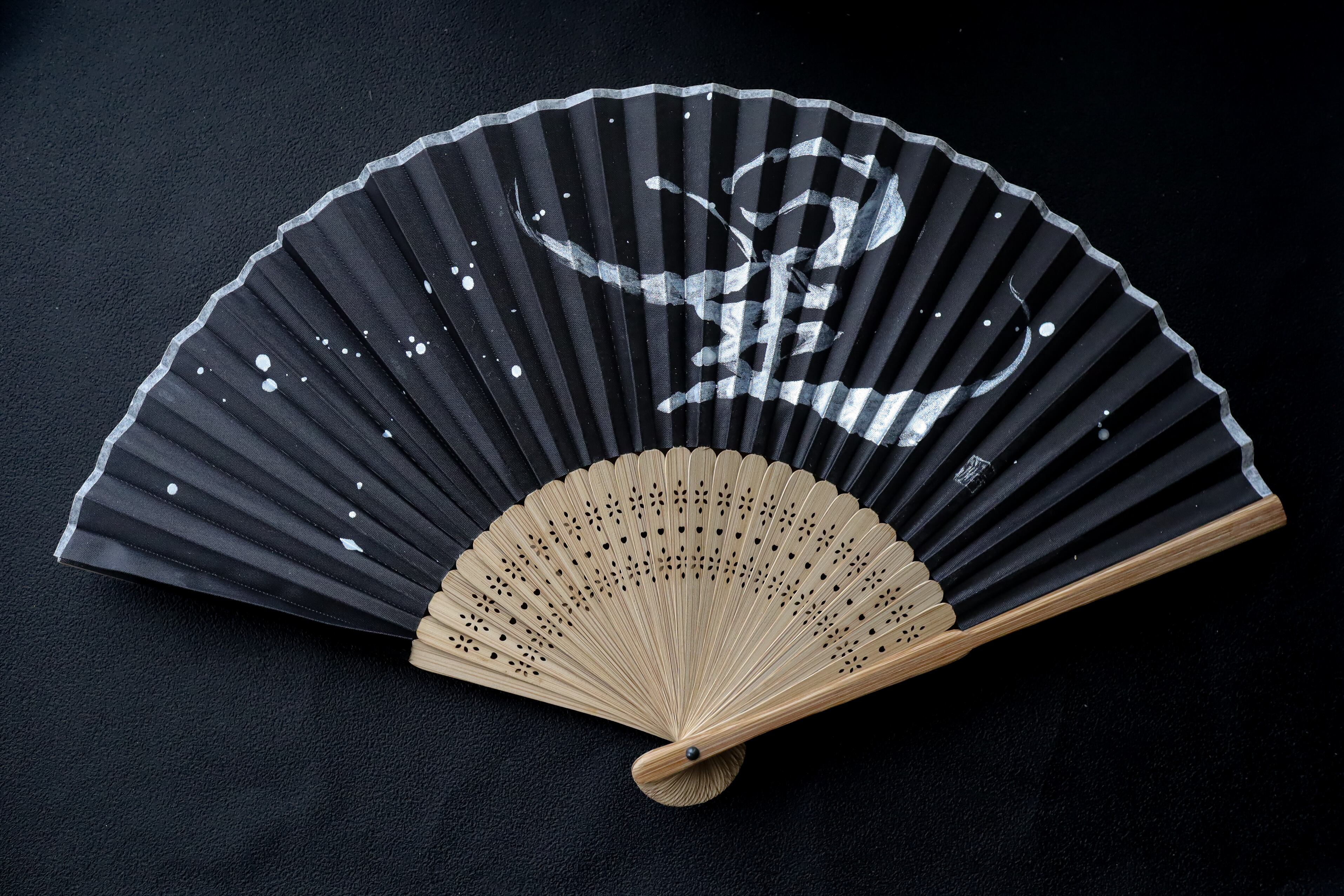 ご希望の文字(漢字4文字まで)を、私がおまかせで扇子に直接、金色の墨汁で書きます